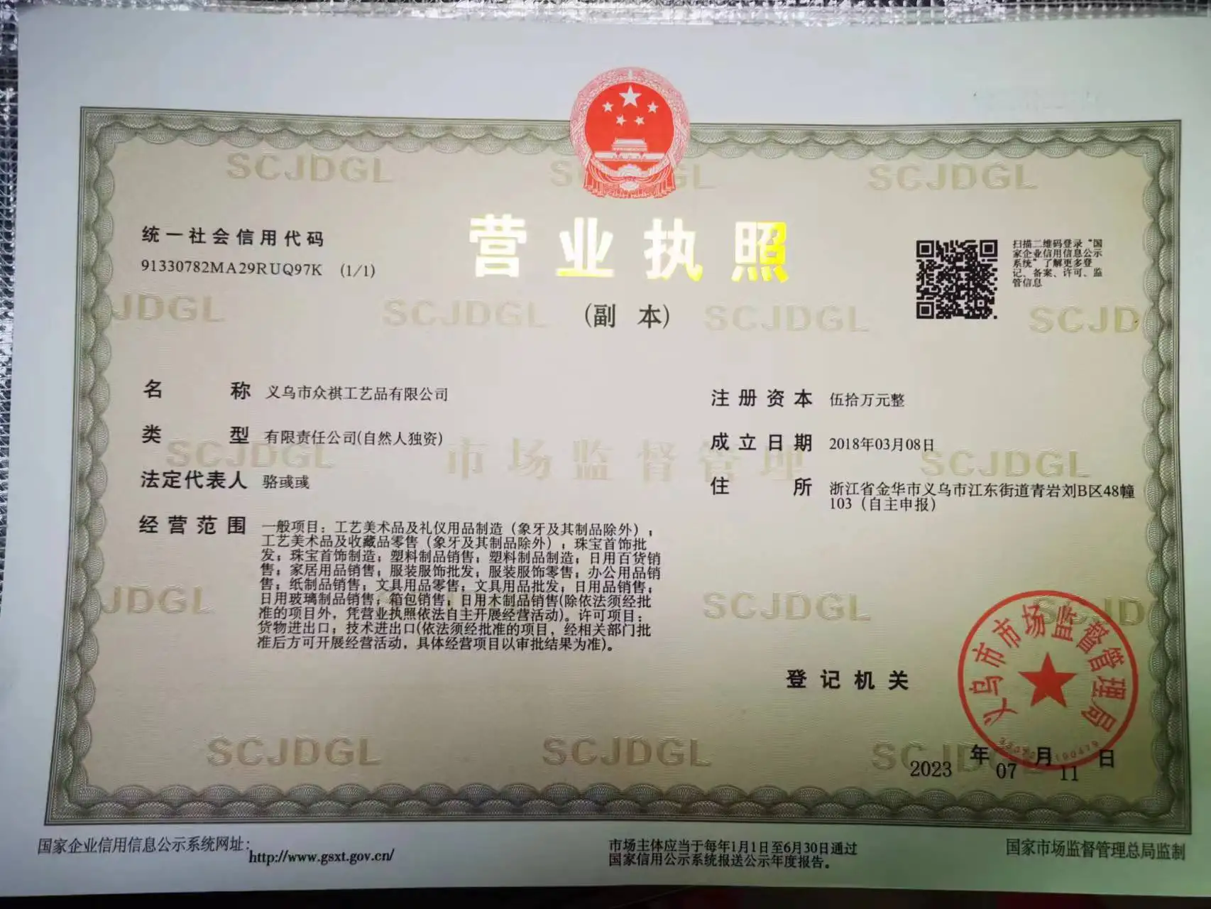 Registered address : No. 103, Building 48, Qingyanliu B Area, Jiangdong Street Jinhua Zhejiang China